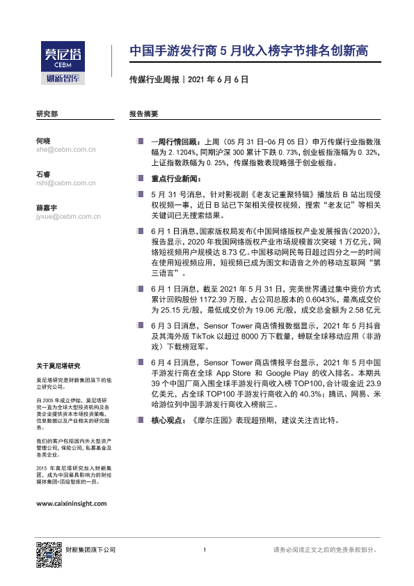 【莫尼塔研究】【20210606】中国手游发行商5月收入榜字节排名创新高-7页