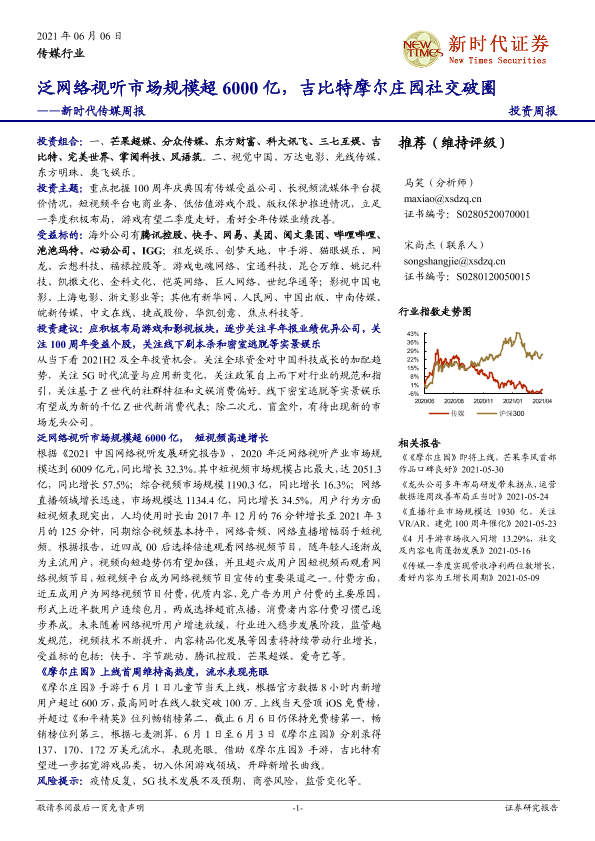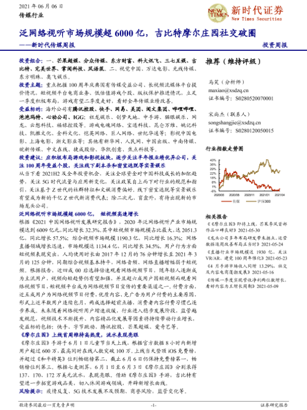 【新时代证券】【20210606】新时代证券-传媒周报:泛网络视听市场规模超6000亿,吉比特摩尔庄园社交破圈-27页