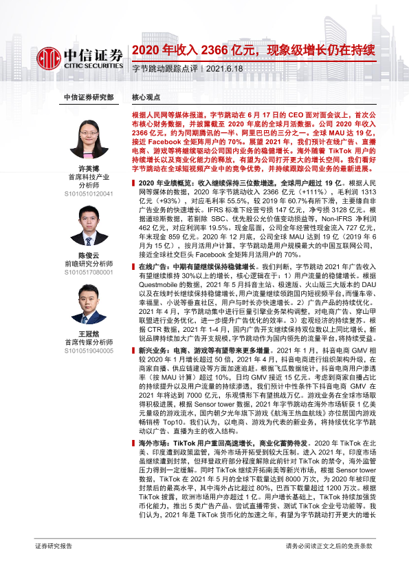 【中信证券】【20210618】20210618-中信证券-传媒:字节跳动跟踪点评-2020年收入2366亿元,现象级增长仍在持续-8页