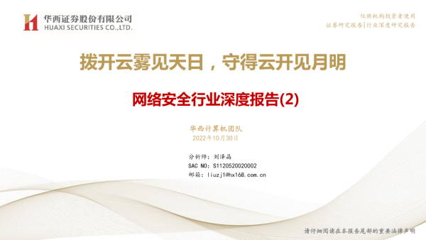 【华西证券】【20221031】网络安全行业深度报告(2):拨开云雾见天日,守得云开见月明-62页