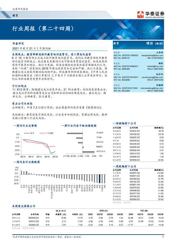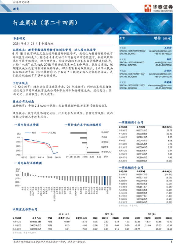 【华泰证券】【20210621】教育行业周报(第二十四周)-13页