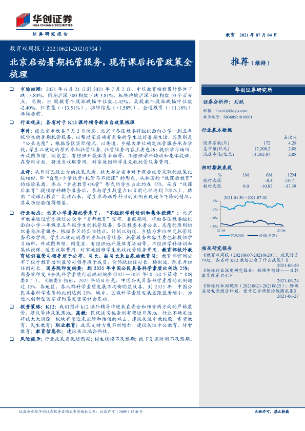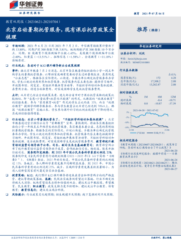 【华创证券】【20210704】20210704-华创证券-教育行业双周报:北京启动暑期托管服务,现有课后托管政策全梳理-15页