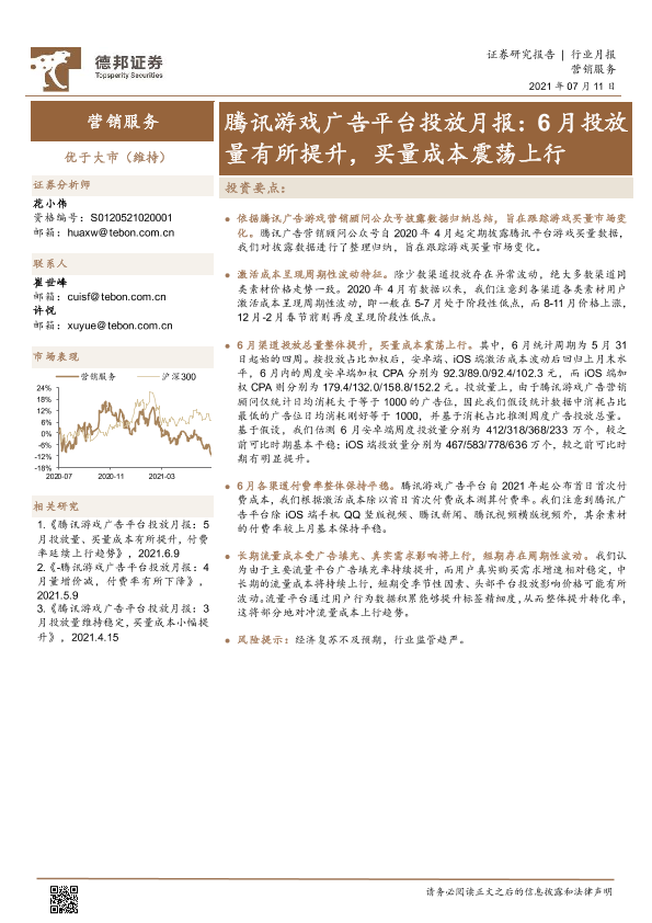 【德邦证券】【20210711】腾讯游戏广告平台投放月报:6月投放量有所提升,买量成本震荡上行-10页