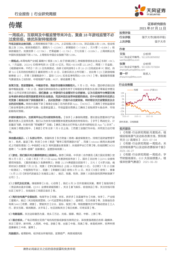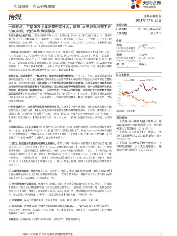【天风证券】【20210711】传媒一周观点:互联网及中概监管带来冲击,复盘18年游戏监管不必过度悲观,绩优东财持续推荐-16页