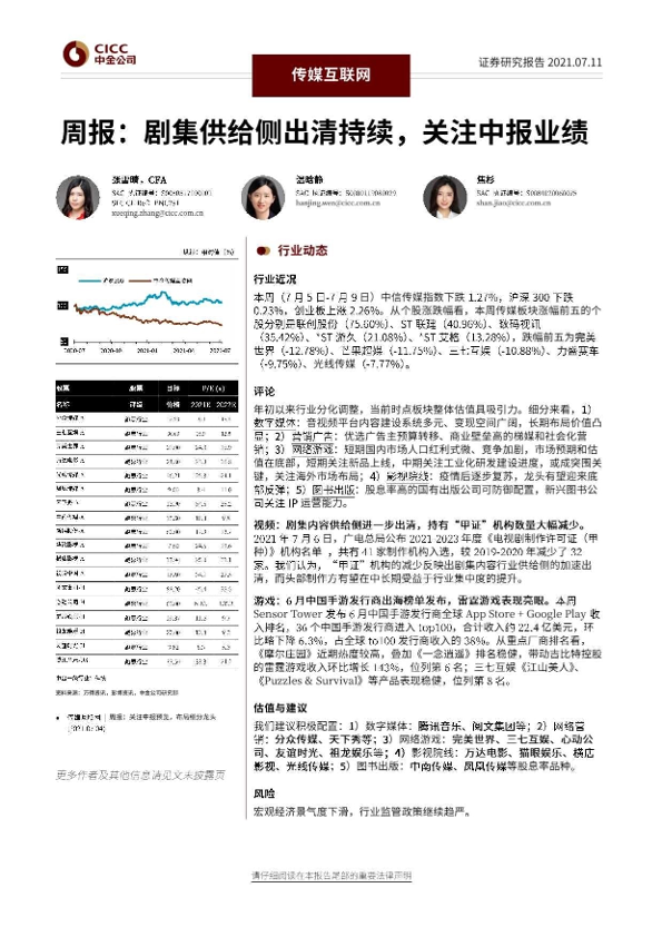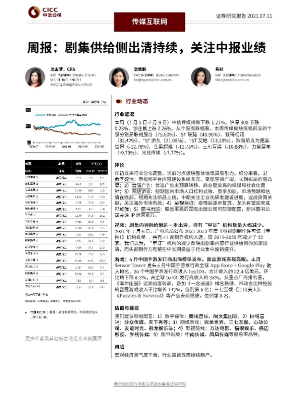 【中金公司】【20210711】剧集供给侧出清持续,关注中报业绩-26页