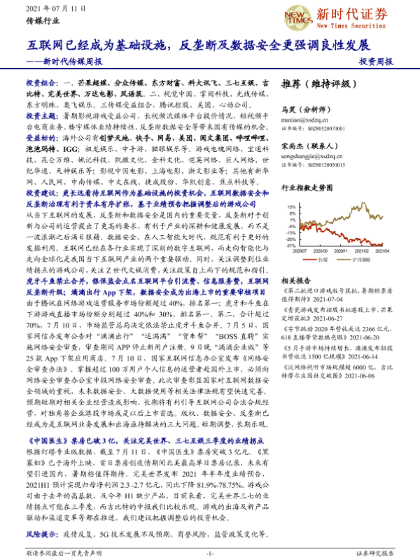 【新时代证券】【20210711】新时代证券-传媒周报:互联网已经成为基础设施,反垄断及数据安全更强调良性发展-17页