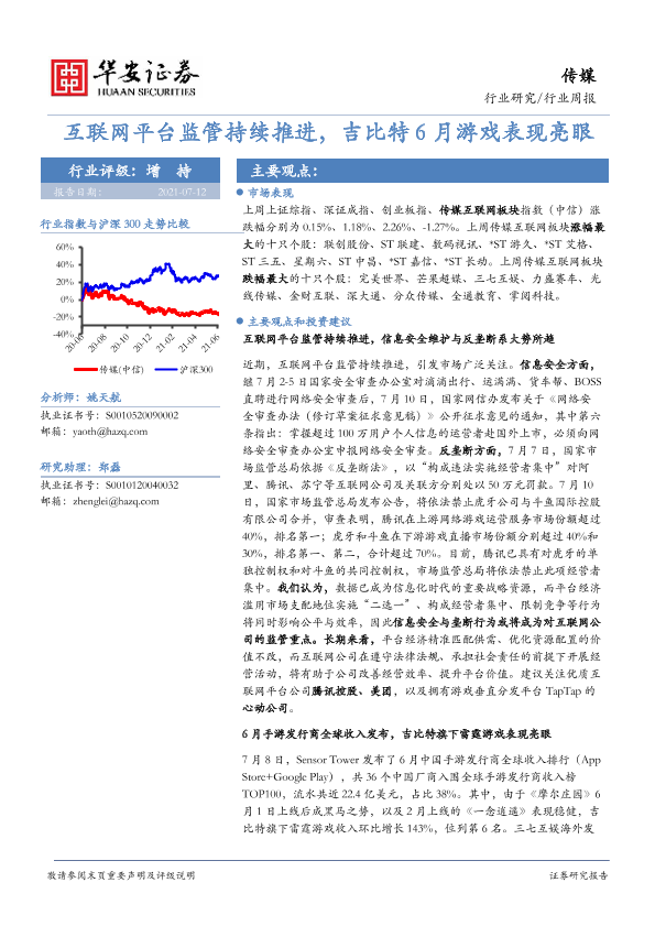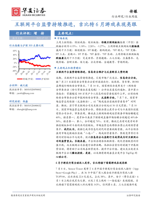 【华安证券】【20210712】20210712-华安证券-传媒行业周报:互联网平台监管持续推进,吉比特6月游戏表现亮眼-18页