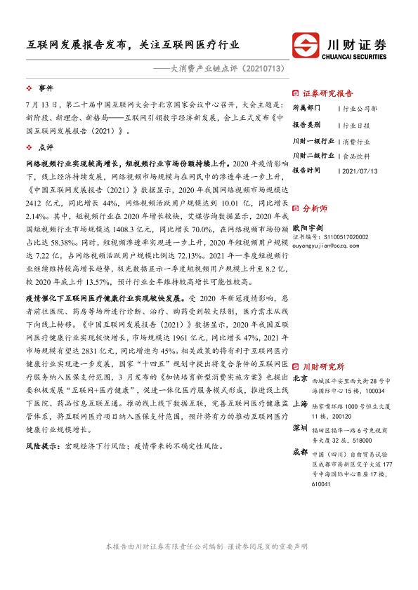 【川财证券】【20210713】大消费产业链点评:互联网发展报告发布,关注互联网医疗行业-2页