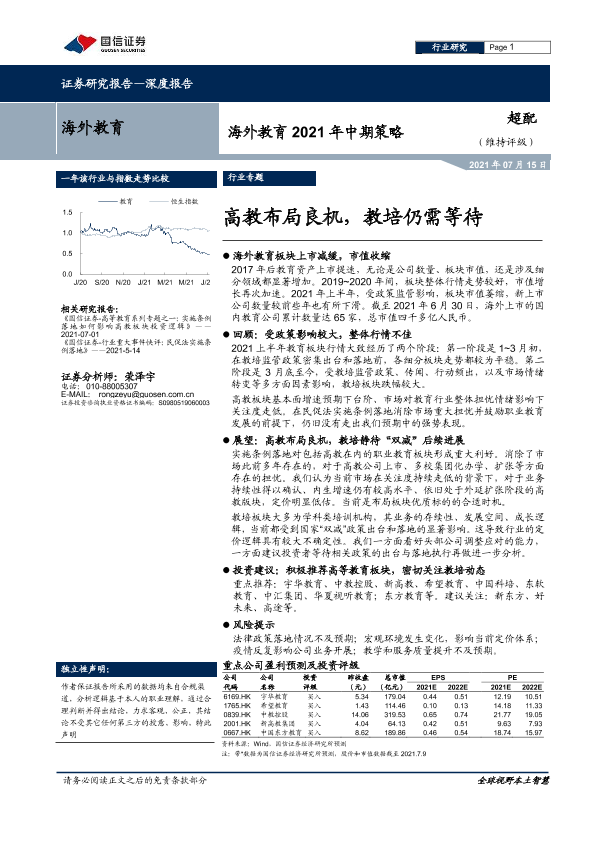 【国信证券】【20210715】海外教育2021年中期策略:高教布局良机,教培仍需等待-23页