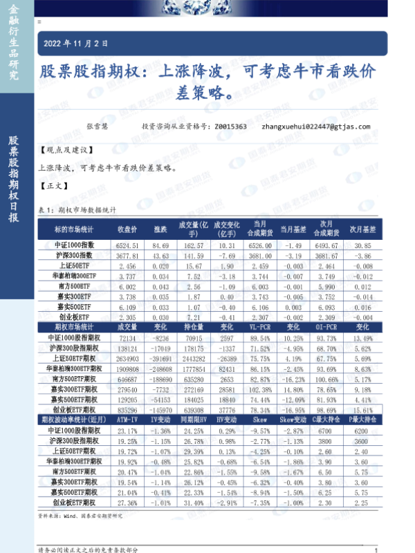 【国泰君安期货】【20221102】股票股指期权:上涨降波,可考虑牛市看跌价差策略-26页