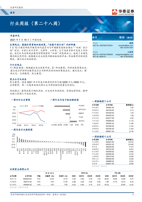 【华泰证券】【20210718】20210718-华泰证券-教育行业周报(第二十八周)-13页