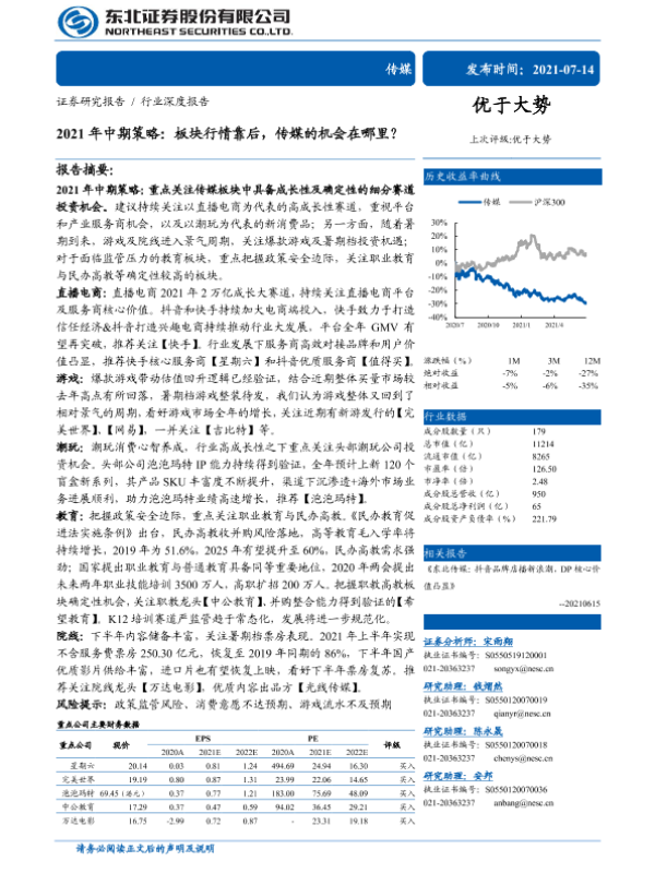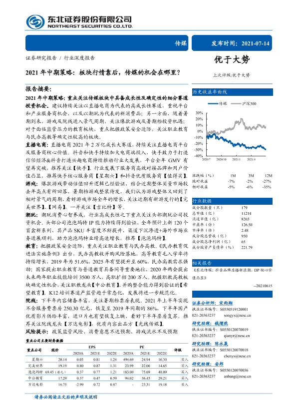 【东北证券】【20210714】2021年中期策略:板块行情靠后,传媒的机会在哪里?-93页