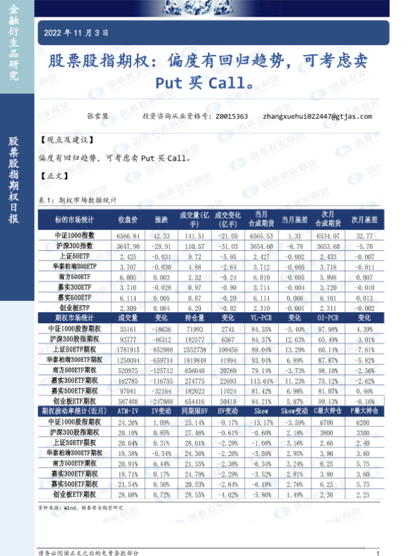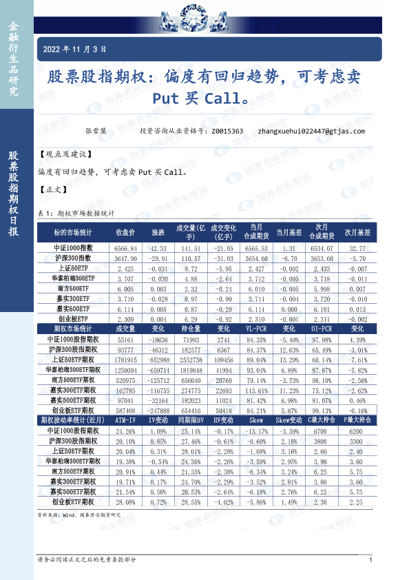【国泰君安期货】【20221103】股票股指期权:偏度有回归趋势,可考虑卖Put买Call-26页