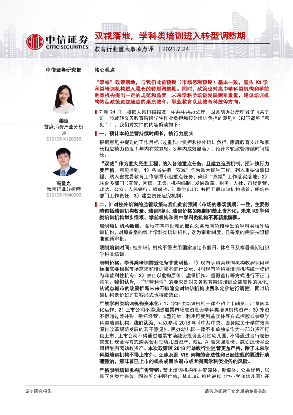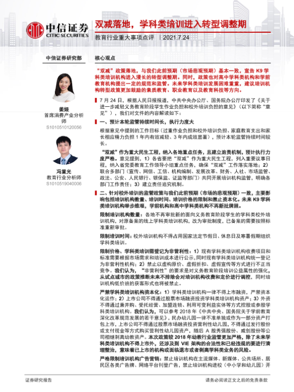 【中信证券】【20210724】双减落地,学科类培训进入转型调整期-3页