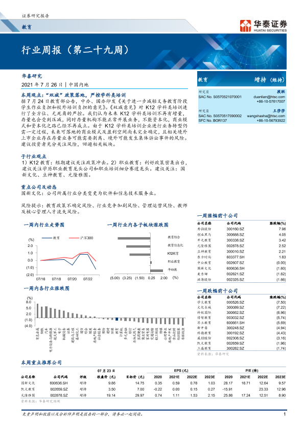 【华泰证券】【20210726】20210726-华泰证券-教育行业周报(第二十九周)-14页