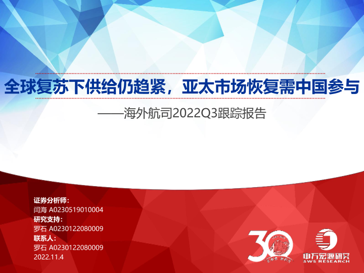 【申万宏源】【20221104】航空行业海外航司2022Q3跟踪报告:全球复苏下供给仍趋紧,亚太市场恢复需中国参与-54页