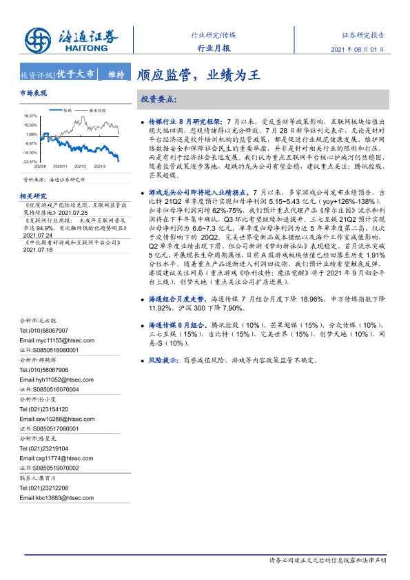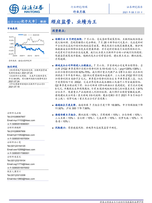 【海通证券】【20210801】20210801-海通证券-传媒行业月报:顺应监管,业绩为王-11页