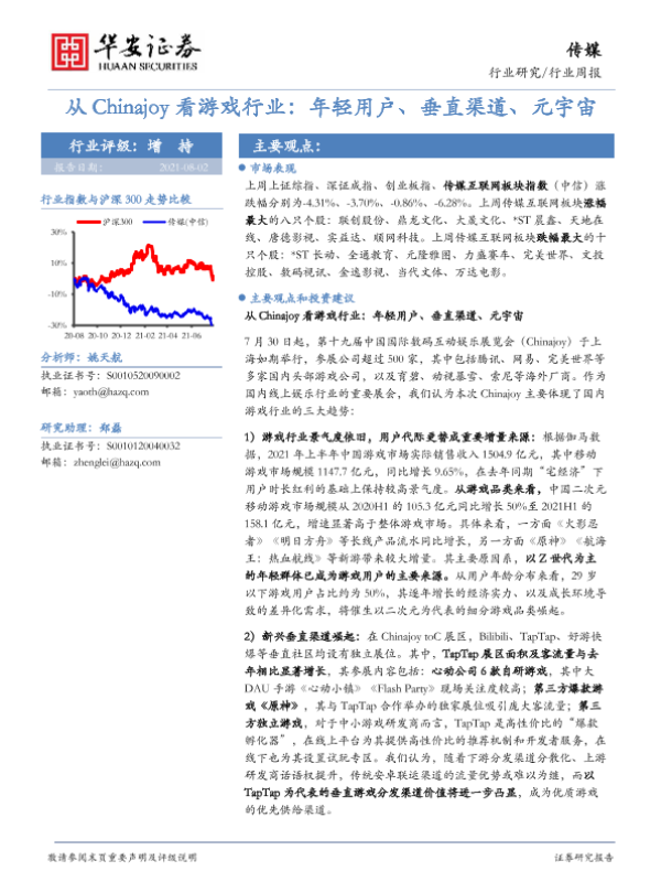 【华安证券】【20210802】从Chinajoy看游戏行业:年轻用户、垂直渠道、元宇宙-17页