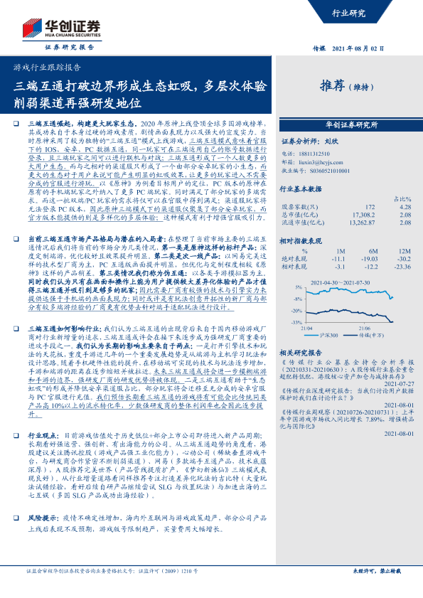 【华创证券】【20210802】游戏行业跟踪报告:三端互通打破边界形成生态虹吸,多层次体验削弱渠道再强研发地位-13页