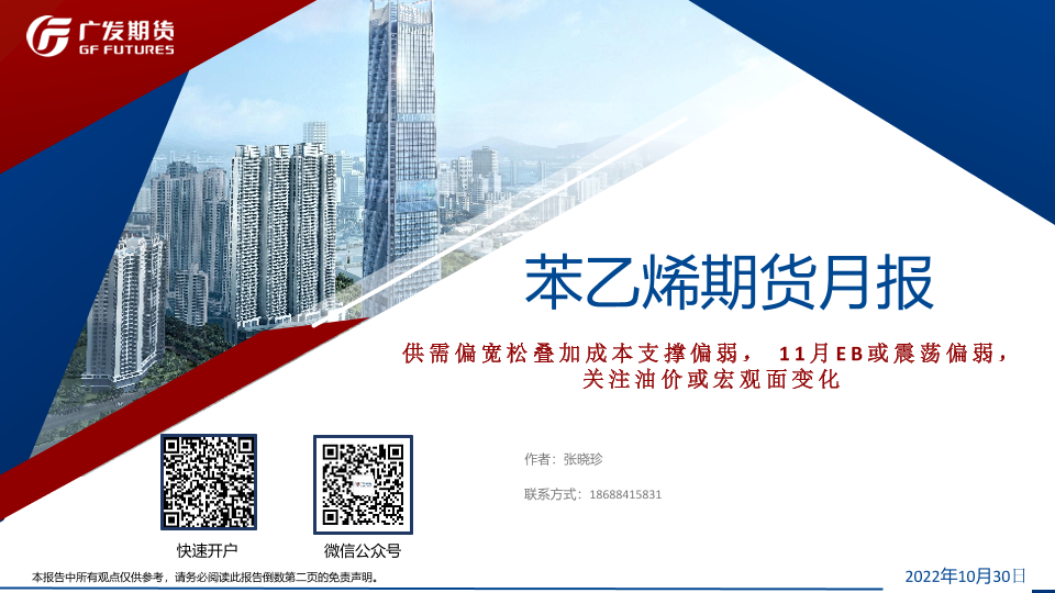 【广发期货】【20221030】苯乙烯期货月报:供需偏宽松叠加成本支撑偏弱,11月EB或震荡偏弱,关注油价或宏观面变化-32页