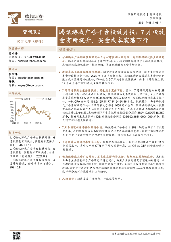 【德邦证券】【20210808】腾讯游戏广告平台投放月报:7月投放量有所提升,买量成本震荡下行-12页