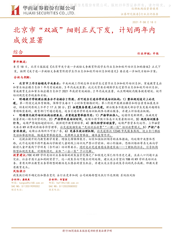 【华西证券】【20210818】北京市“双减”细则正式下发,计划两年内成效显著-3页