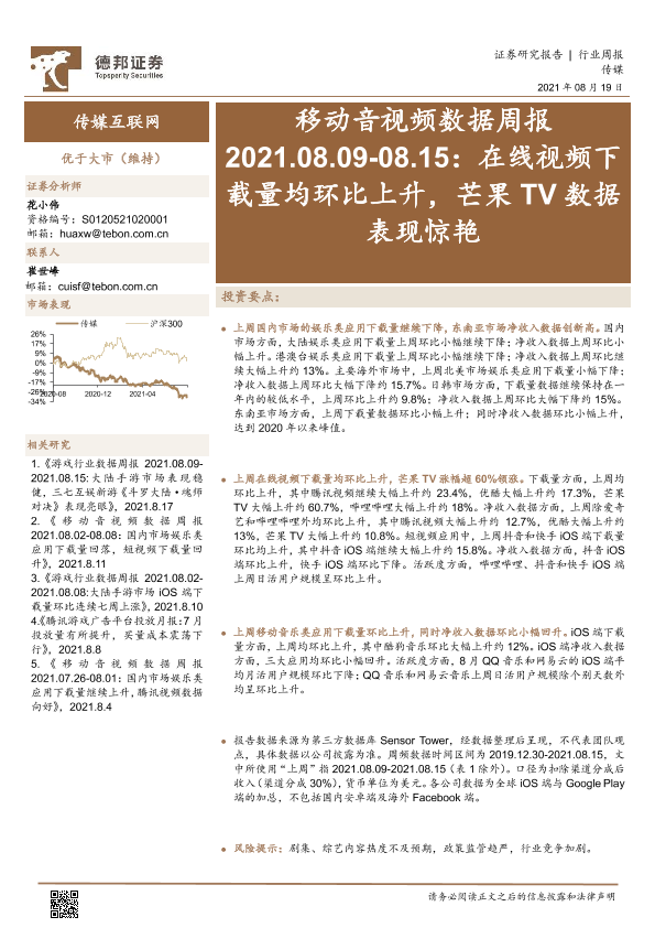 【德邦证券】【20210819】移动音视频数据周报:在线视频下载量均环比上升,芒果TV数据表现惊艳-16页