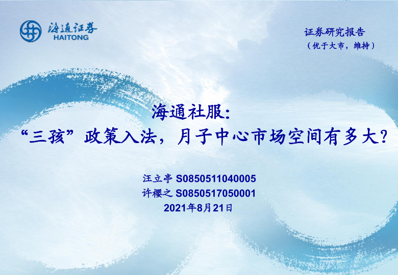 【海通证券】【20210821】“三孩”政策入法,月子中心市场空间有多大?-18页