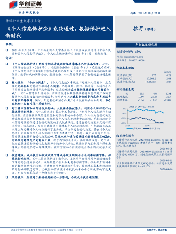 【华创证券】【20210822】传媒行业重大事项点评:《个人信息保护法》表决通过,数据保护进入新时代-4页