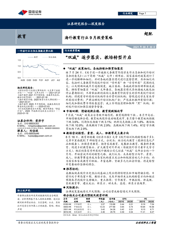 【国信证券】【20210830】海外教育行业9月投资策略:“双减”逐步落实,教培转型开启-13页