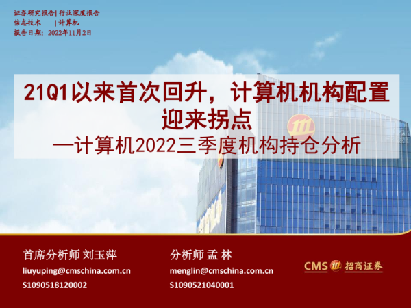 【海通证券】【20221102】计算机行业2022三季度机构持仓分析:21Q1以来首次回升,计算机机构配置迎来拐点-25页