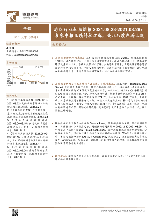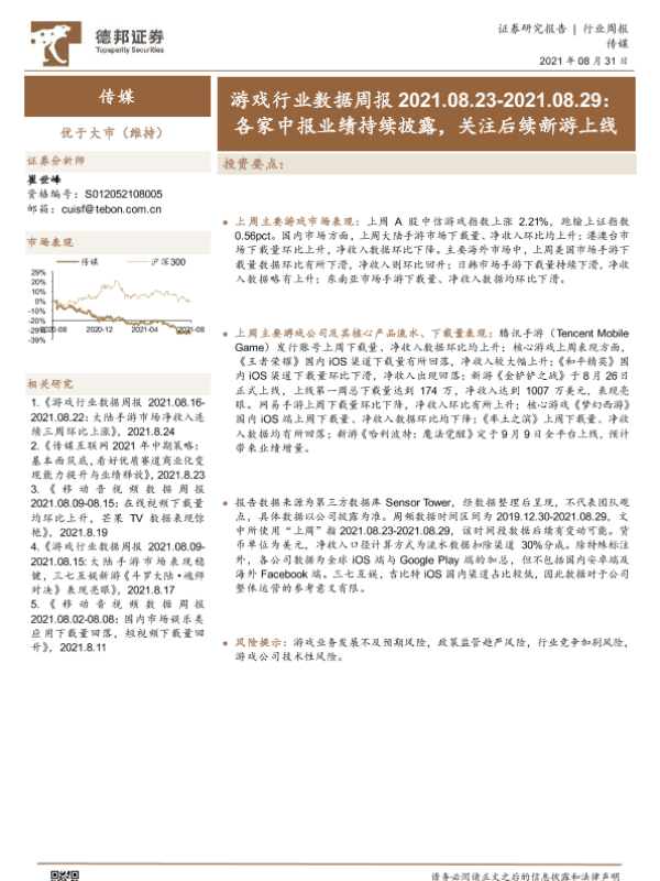 【德邦证券】【20210831】游戏行业数据周报:各家中报业绩持续披露,关注后续新游上线-32页