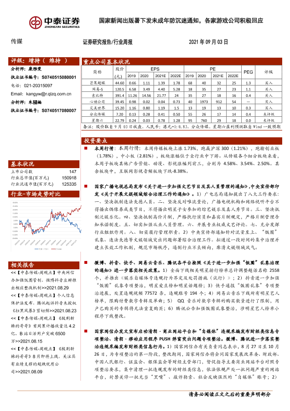 【中泰证券】【20210903】国家新闻出版署下发未成年防沉迷通知,各家游戏公司积极回应-15页