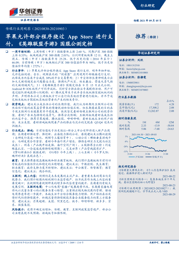 【华创证券】【20210905】传媒行业周观察:苹果允许部分程序绕过App Store进行支付,《英雄联盟手游》国服公测定档-21页