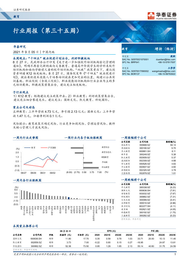 【华泰证券】【20210905】教育行业周报(第三十五周)-14页