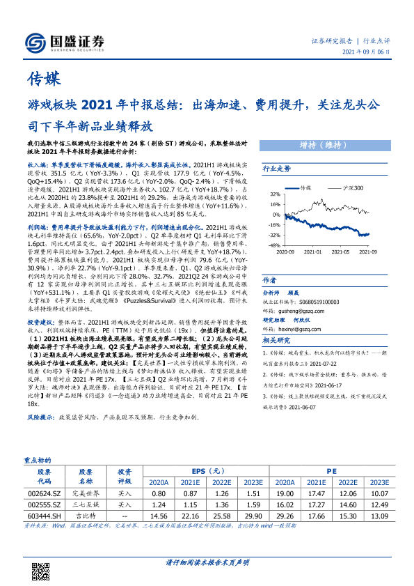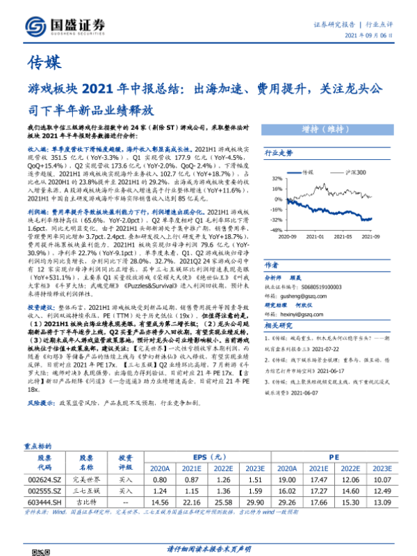【国盛证券】【20210906】游戏板块2021年中报总结:出海加速、费用提升,关注龙头公司下半年新品业绩释放-18页