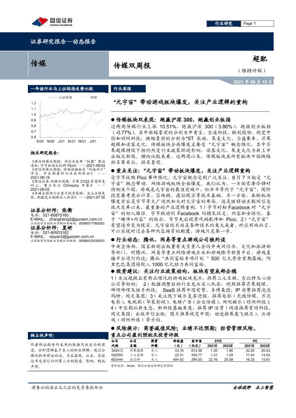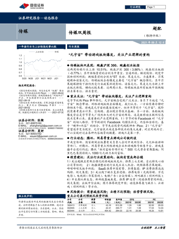 【国信证券】【20210912】20210912-国信证券-传媒双周报:“元宇宙”带动游戏板块爆发,关注产业逻辑的重构-8页