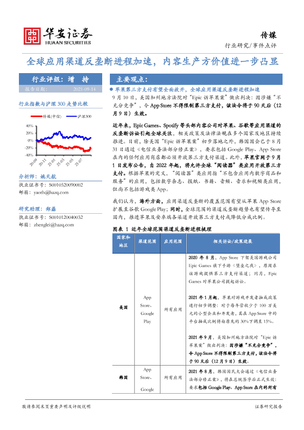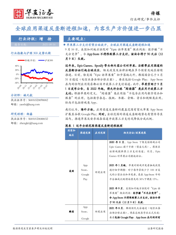 【华安证券】【20210914】全球应用渠道反垄断进程加速,内容生产方价值进一步凸显-5页