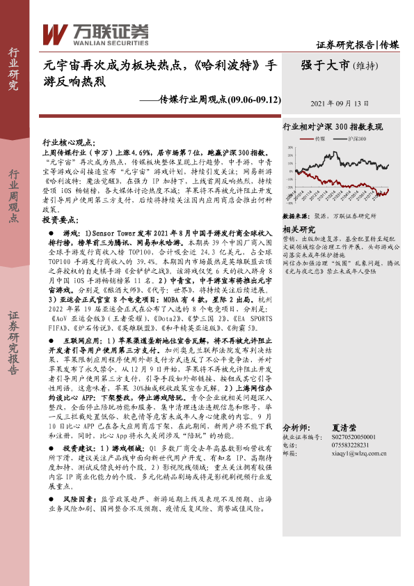 【万联证券】【20210913】20210913-万联证券-传媒行业周观点:元宇宙再次成为板块热点,《哈利波特》手游反响热烈-13页