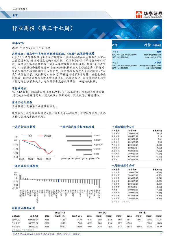 【华泰证券】【20210920】教育行业周报(第三十七周)-14页