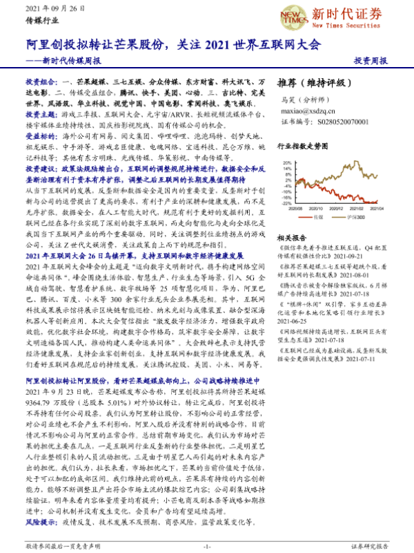 【新时代证券】【20210926】新时代证券-新时代传媒周报:阿里创投拟转让芒果股份,关注2021世界互联网大会-18页