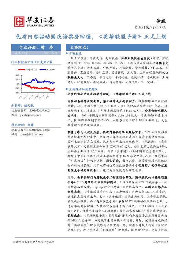 【华安证券】【20211011】20211011-华安证券-传媒行业周报:优质内容驱动国庆档票房回暖,《英雄联盟手游》正式上线-17页