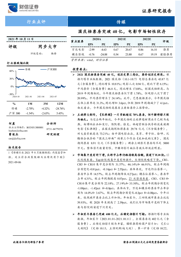 【财信证券】【20211011】国庆档票房突破40亿,电影市场韧性犹存-3页