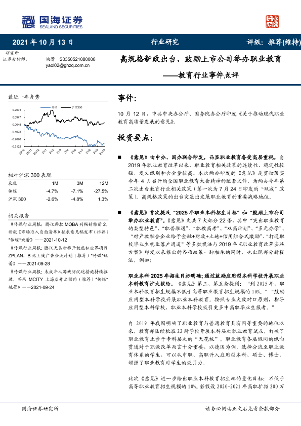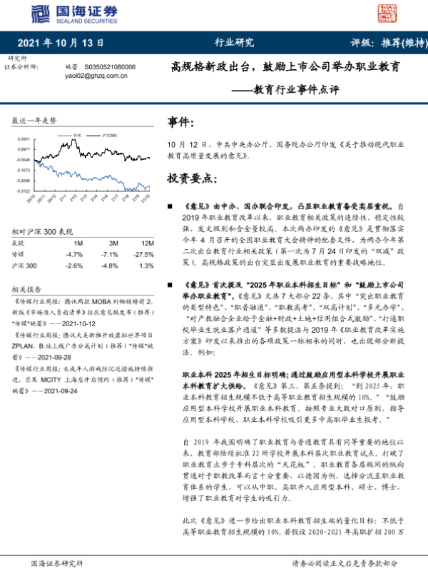 【国海证券】【20211013】高规格新政出台,鼓励上市公司举办职业教育——教育行业事件点评-4页