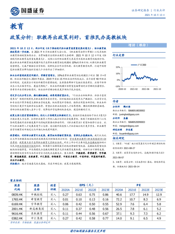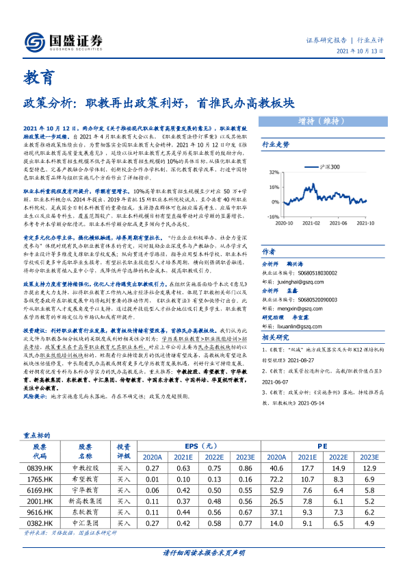 【国盛证券】【20211013】政策分析:职教再出政策利好,首推民办高教板块-12页