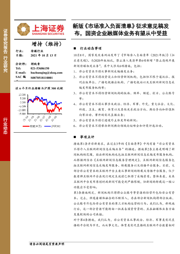 【上海证券】【20211013】20211013-上海证券-传媒行业动态:新版《市场准入负面清单》征求意见稿发布,国资企业融媒体业务有望从中受益-3页