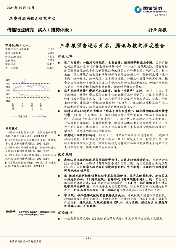 【国金证券】【20211017】传播行业周报:三季报预告逐步开启,腾讯与搜狗深度整合-18页