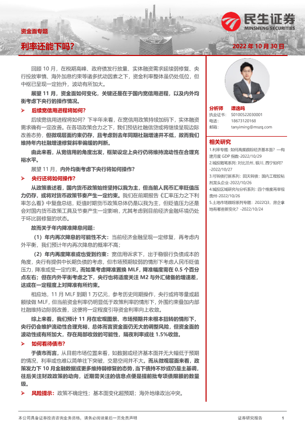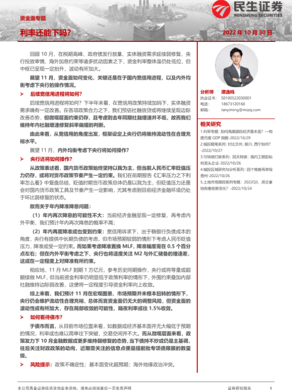 【民生证券】【20221030】资金面专题:利率还能下吗?-23页