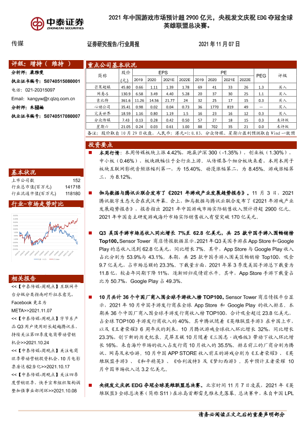 【中泰证券】【20211107】2021年中国游戏市场预计超2900亿元,央视发文庆祝EDG夺冠全球英雄联盟总决赛-13页