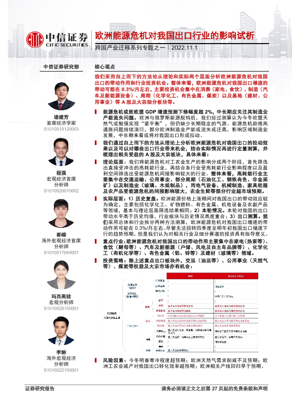 【中信证券】【20221101】跨国产业迁移系列专题之一:欧洲能源危机对我国出口行业的影响试析-27页